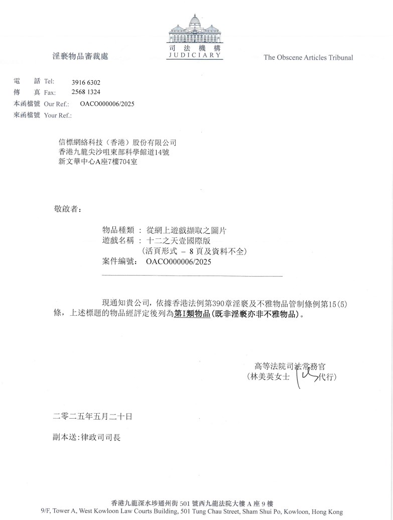 Hong Kong Judicial Tribunal Rating: OACO000006/2025 OACO000007/2025 OACO000008/2025